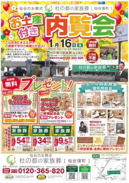 杜の都の家族葬 仙台蒲町 お土産特典付き内覧会