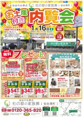 1月16日(金) 10:00~12:00 お土産付き内覧会を開催!(雨天決行)