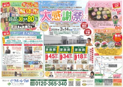 3月14日(土)10:00~12:00 セラホール名取にて大感謝祭を開催!