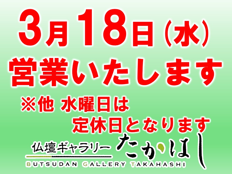 仏壇ギャラリーたかはし 営業日のお知らせ
