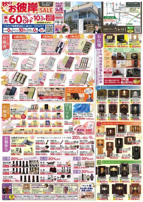 9月7日(日)~9月30日(火)まで秋のお彼岸SALEを実施!!