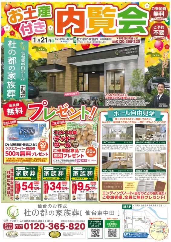 1月21日(水) 10:00~12:00 お土産付き内覧会を開催!(雨天決行)
