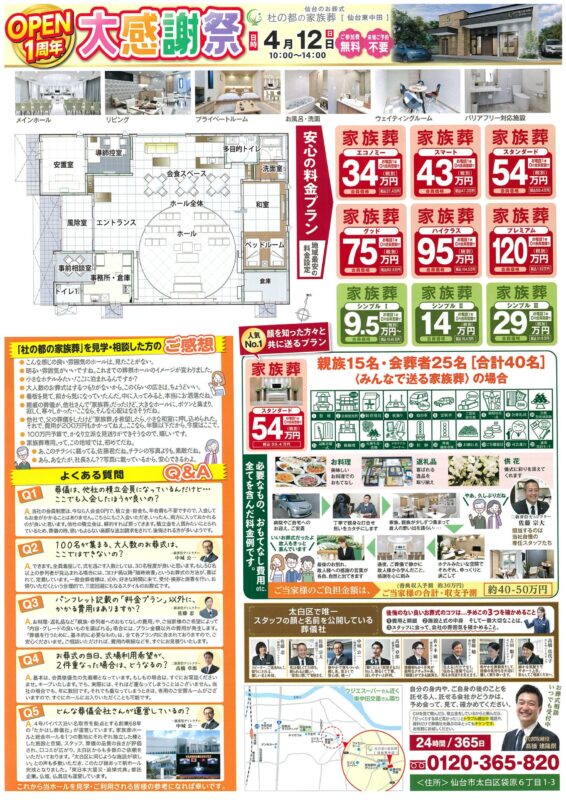 杜の都の家族葬 仙台東中田 OPEN1周年大感謝祭を開催いたします!